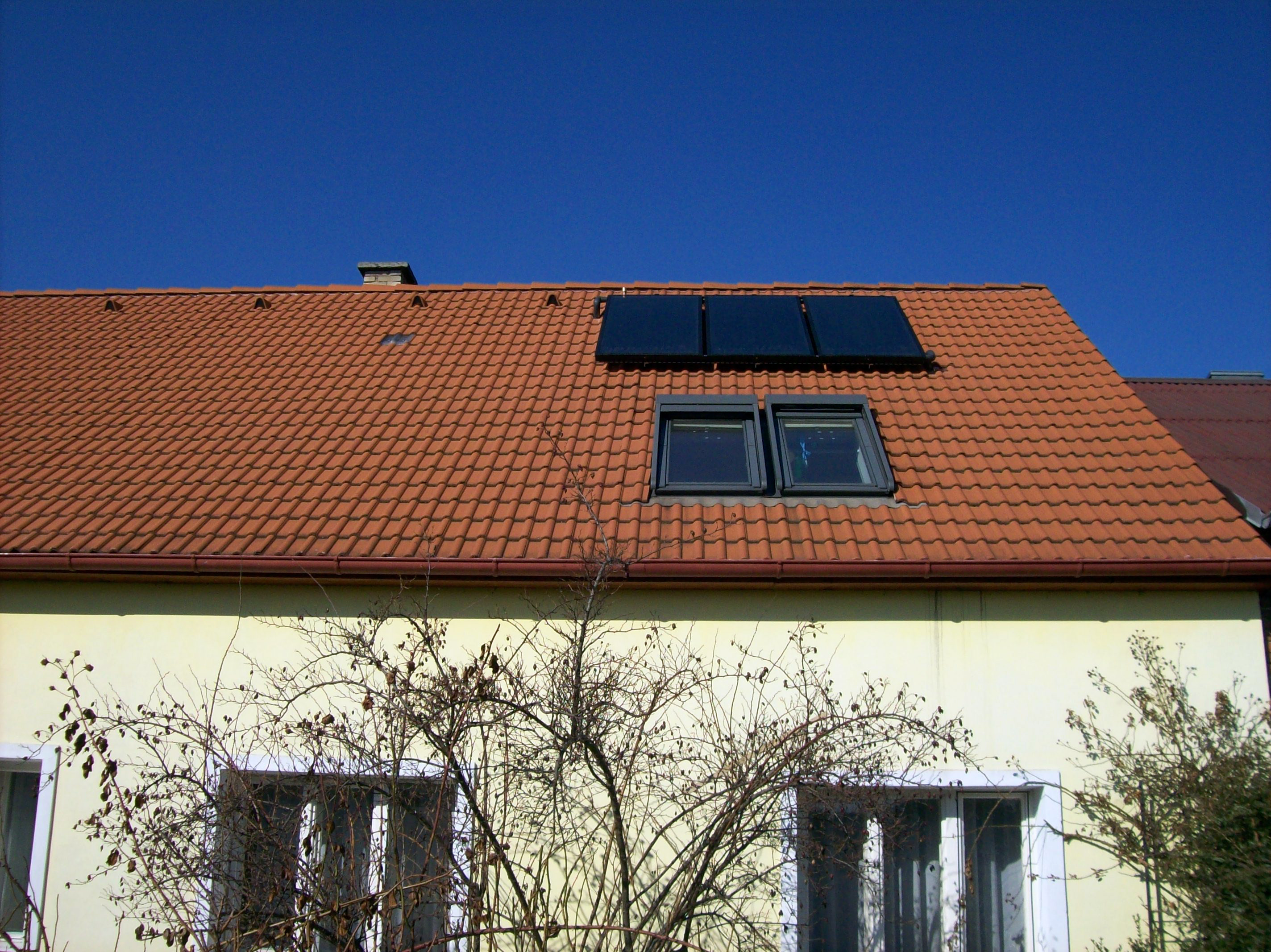 Rodinný dům v Olomouci využívá 3 ks plochých kolektorů THERMOSOLAR 300 k předehřevu a ohřevu vody. Jednoduchá, ale účinná varianta efektivního využití sluneční energie.